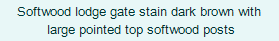Left - Bespoke lodge Style gates with a double vertical dividing bar, manufactured using either hardwood or softwood timber. these gates are hung between suitably sized posts, within a run of tongue and grooved style fencing which has been stained in a light brown Barratine wood preservative. The posts are mounted with a ball finial and cap to give a nicely finished effect.